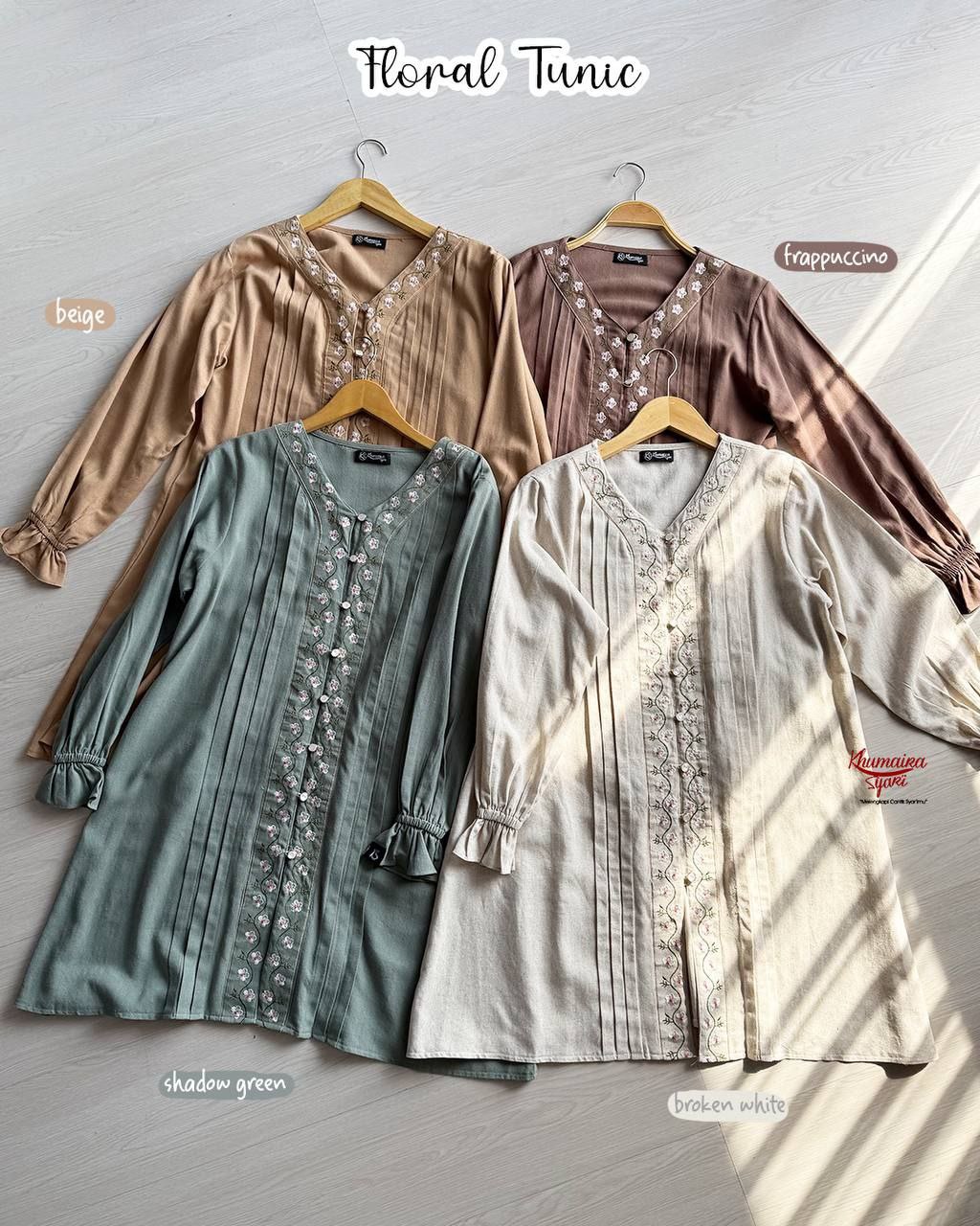 -Aksen bordir pada sisi bagian depan Tunic dengan aksen kancing hidup