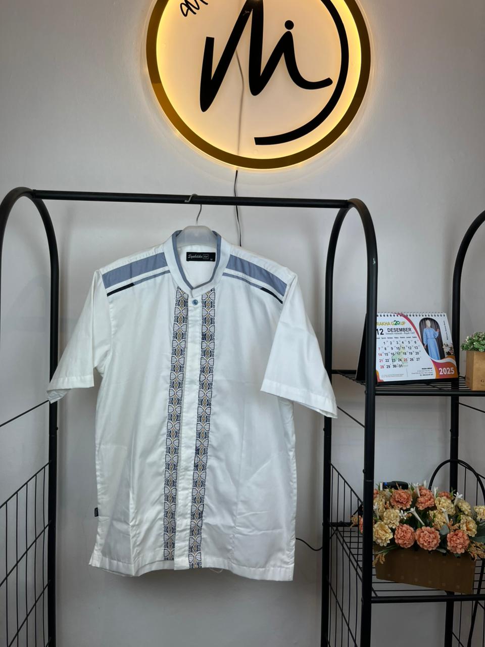 Kokko  dengan bordir super rapi dengan warna biru, lengan pendek, full kancing